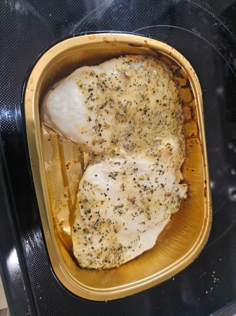 AND ADD CHICKEN — we usually use the H-E-B Meal Simple Chipotle Lime Chicken breasts because they’re fast and easy — which is the point of this meal, but if you’re not in Texas, just season some chicken with garlic and lime. Cook it however you want to — or use leftovers if you have any. Anyway, you need chicken.
