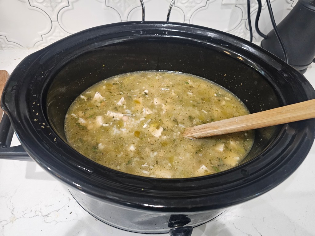 MMMmmm…..green chilies! Sometimes we get tired of other stuff so we make a crockpot full of green chile chicken soup — it’s so simple and easy and goood!!!