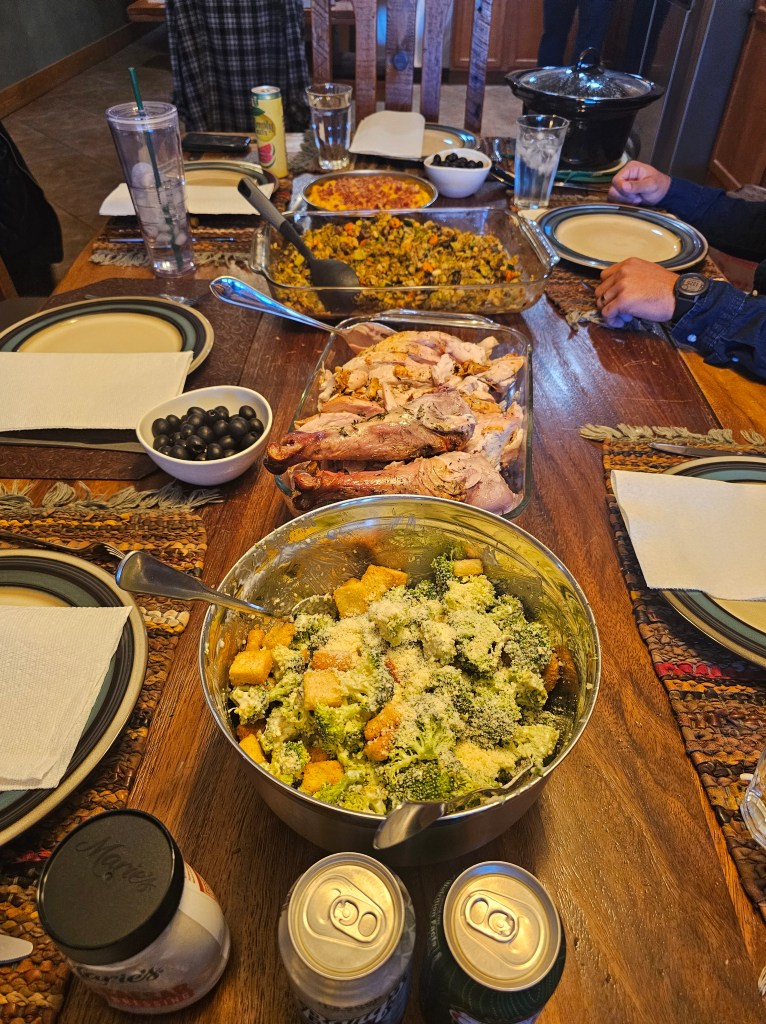 By now, your turkey should be rested. The sides should be ready to pull from the oven. Your dad should carve the turkey and be ready to sit down, say thanks, and eat.